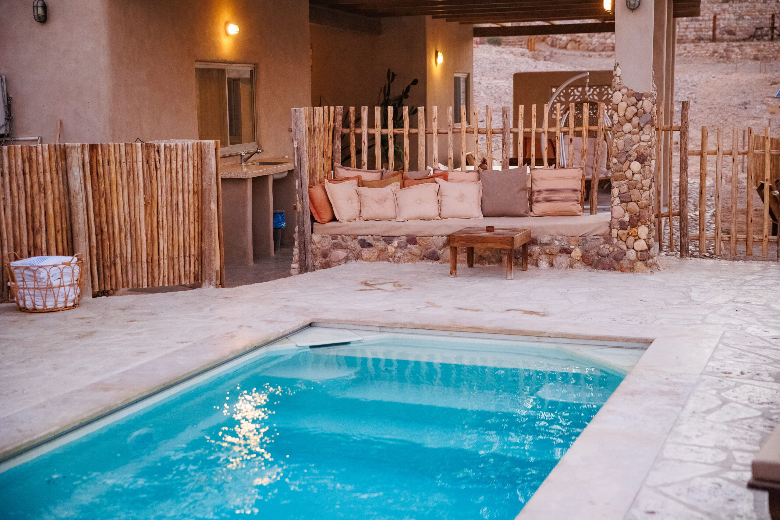 במתחם יעמוד לרשותנו מרכז סדנאות יפיפייה. במקום יש בריכת שכשוך משותפת מחוממת. פינות ישיבה ומדורה ובלילה שמיים זרועי הכוכבים. את המקום לריטריט בחרנו בקפידה על מנת